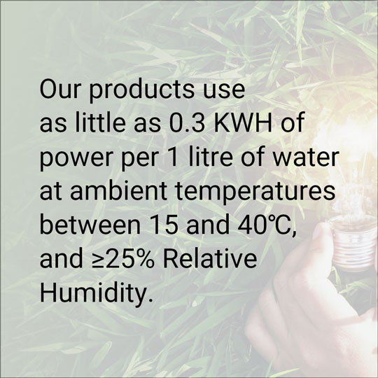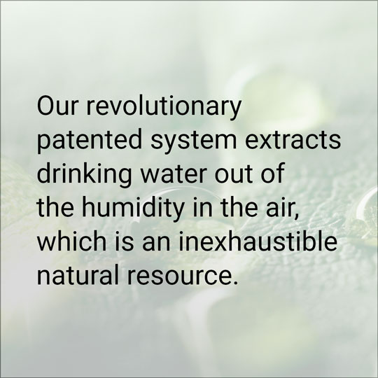 A E R O S’s technology extracts water from the air by enabling the air to move fast into the patented Genius system in a significantly short time, ensuring greater efficiency and thus using less energy.